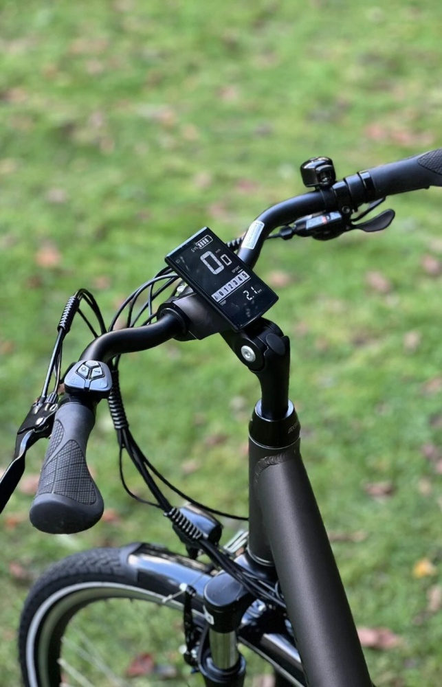 E-city 28″ to rower elektryczny zaprojektowany z myślą o osobach szukających wygody i stylu w miejskim użytkowaniu. Dzięki niskiemu przekrokowi, wsiadanie jest wygodne i łatwe, a komfort jazdy zapewnia amortyzator SR Suntour oraz amortyzowany wspornik siodełka, które doskonale radzą sobie nawet z nierównymi nawierzchniami.